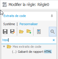 Une nouvelle option de la boîte de dialogue Modifier la règle vous permet de filtrer les extraits de code des règles.