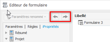 Les boutons Annuler et Rétablir sont désormais ajoutés directement à la boîte de dialogue Éditeur de formulaire. Vous pouvez également utiliser les touches de raccourci (Ctrl+Z et Ctrl+Y) pour effectuer ces opérations.