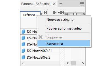 Vous pouvez renommer un scénario lors de la création ou de la modification d’une présentation. Cliquez avec le bouton droit de la souris sur le titre du scénario et choisissez Renommer.