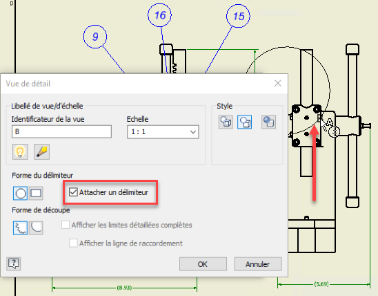 Vous avez désormais la possibilité de verrouiller une vue de détail sur un point lors de la création. Découvrez la nouvelle option « Attacher un délimiteur » dans la boîte de dialogue Vue de détail, et sélectionnez un point auquel fixer la vue de détail.