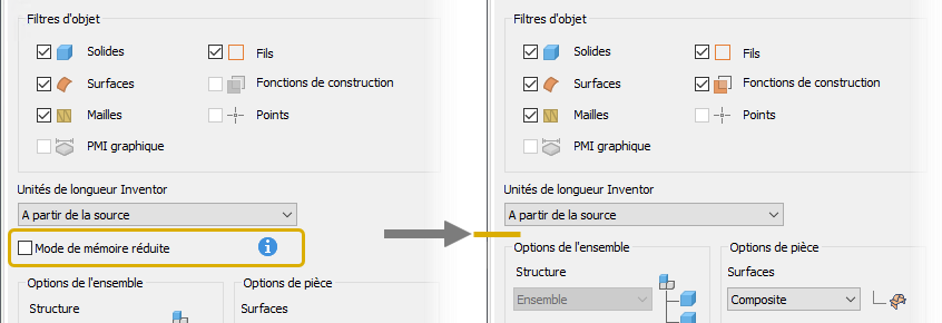 Pour l’importation au format OBJ et STL, l’option Enregistrer les composants lors du chargement est supprimée.