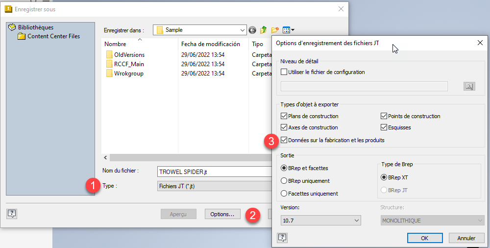L’option permet d’inclure le PMI dans les documents pièce lors de l’exportation d’ensembles aux formats JT et STEP.