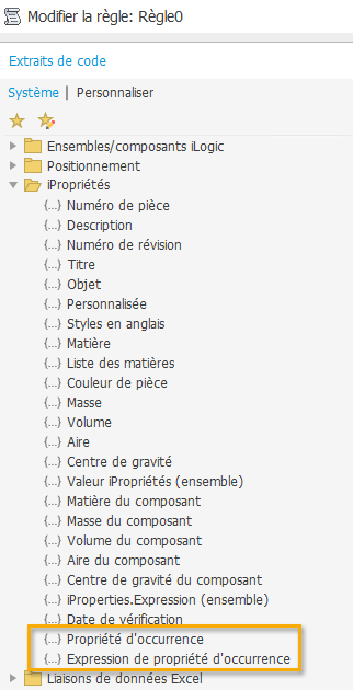Utilisez les nouveaux extraits de code de propriété d’occurrence pour lire et créer des propriétés d’occurrence.