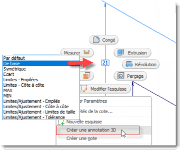 La cote de tolérance De base est également disponible pour les cotes d’esquisse.