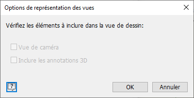 Les deux options sont désactivées lors de la création de vues enfant (vues en coupe et vues de détail, par exemple), si l’orientation de la caméra de la vue enfant ne correspond pas à celle de la vue de dessin en cours de modification.