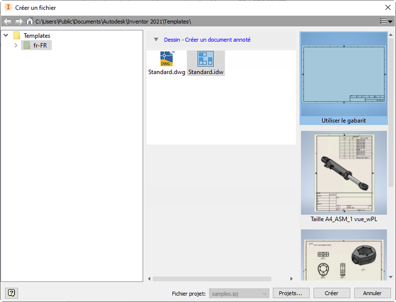 Accédez directement aux gabarits de format de feuille lors de la création d’un fichier de dessin.
