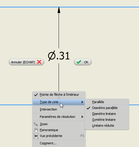 | Vous pouvez utiliser l’option du menu contextuel Type de cote pour modifier le type de cote. |