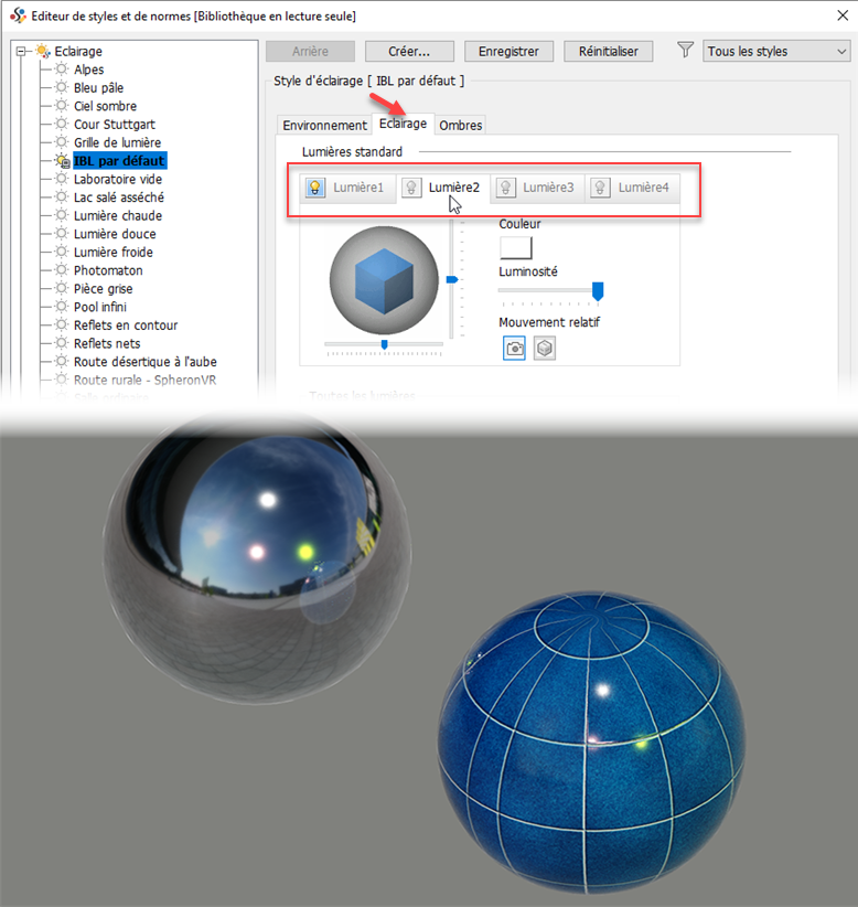 Pour en savoir plus, reportez-vous aux rubriques À propos des styles d’éclairage et Utilisation des styles d’éclairage.