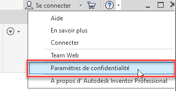 Paramètres de confidentialité du menu déroulant Aide
