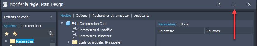 Bouton Agrandir pour l’éditeur iLogic