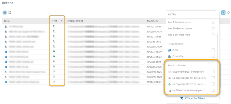 Si vous utilisez Vault, vous pouvez également filtrer à l’aide de l’option État du coffre-fort.