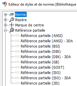 L’option d’annotation 3D de référence partielle pour les normes ANSI, DIN et ISO a été ajoutée aux styles.