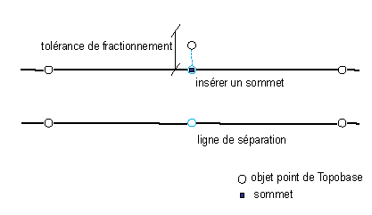 Si la différence entre l'ancien et le nouvel emplacement du point est supérieure à la tolérance de fractionnement, le point n'est pas inséré et un message s'affiche. La tolérance de fractionnement peut être définie dans les options de l'application.