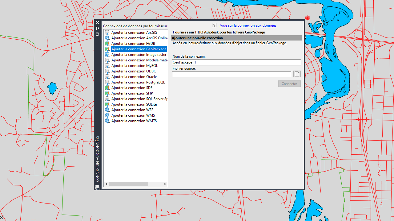 FDO GeoPackage est un nouveau fournisseur introduit dans le jeu d’outils AutoCAD Map 3D 2025. Il vous permet d’accéder aux données SIG stockées dans un fichier GeoPackage. Une fois ces données ajoutées à la carte, vous pouvez facilement les modifier, les analyser et les styliser.