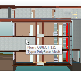 Vous avez la possibilité d'activer et de désactiver les propriétés rapides dans la vue de la scène. Navisworks conserve en mémoire le paramètre de visibilité sélectionné d'une session à l'autre.