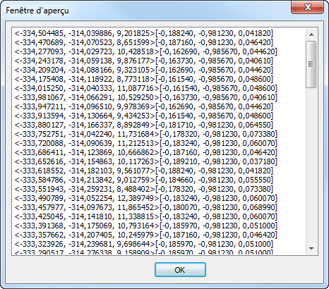 Exemple de fichier séparé par des virgules de coordonnées au format XYZIJK :