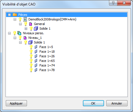 Pour spécifier quels niveaux et surfaces CAO sont affichés dans la vue CAO :