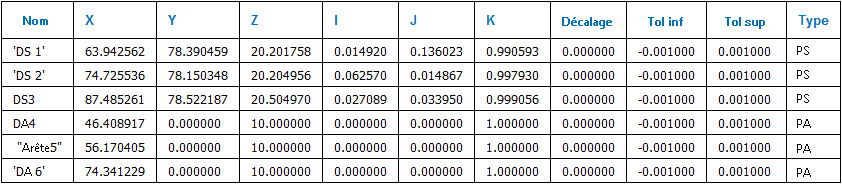 - Les coordonnées IJK de la normale de la surface à l'emplacement du point.