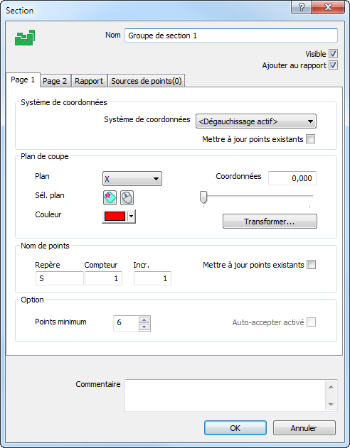 Système de coordonnées — Sélectionnez le dégauchissage ou le repère par rapport auquel vous voulez mesurer les points du groupe.