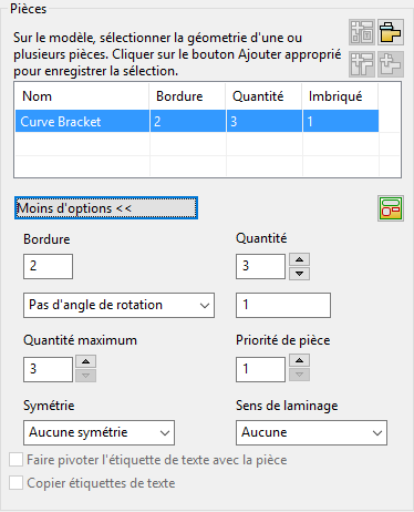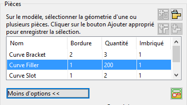 . La pièce est ajoutée à la liste Pièces dans la boite de dialogue Imbrication.