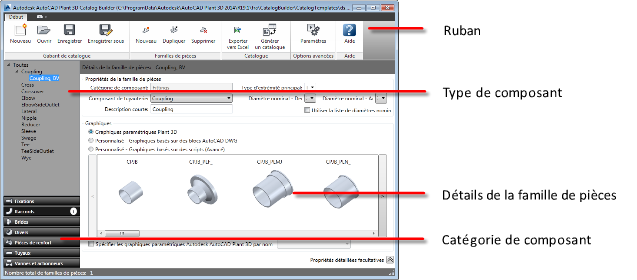 Créez des familles de composants, comportant les propriétés communes à tous les diamètres nominaux d'un composant.
