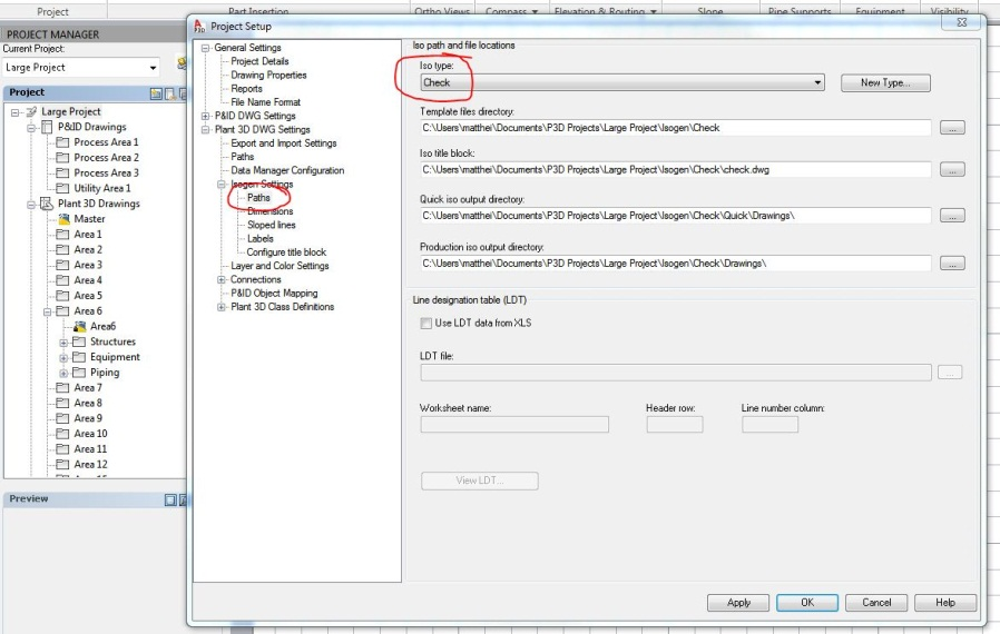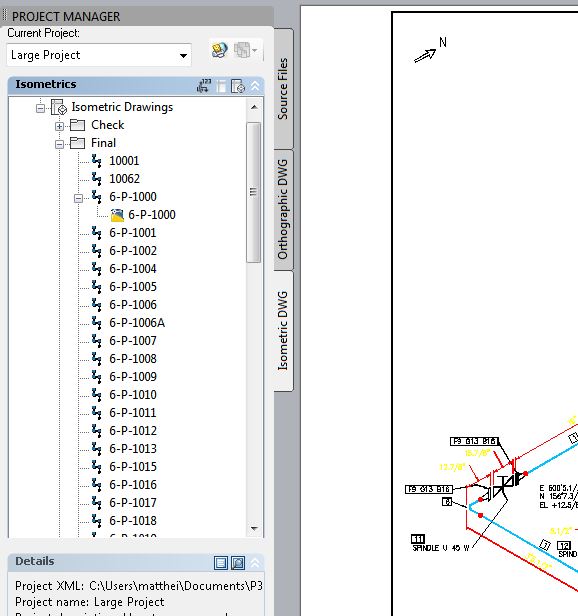 Les dessins isométriques peuvent être créés uniquement à partir d'un dessin, auquel cas seuls les composants de tuyauterie du dessin seront extraits vers l'iso, ou pour l'ensemble du projet. Dans ce cas, l'ensemble de la ligne (parmi plusieurs fichiers de modèle peut-être) sera extrait dans le dessin isométrique unique. Un dessin isométrique peut être divisé en plusieurs feuilles. Chaque feuille représentera un fichier DWG distinct.