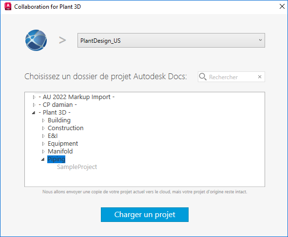 Autodesk Docs permet de collaborer sur des projets dans des sous-dossiers, ce qui est particulièrement utile lors du partage d’un projet Plant 3D dans le cloud.