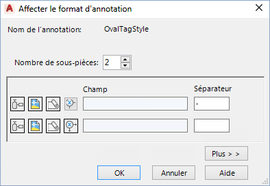 - Dans la boîte de dialogue Affecter le format d'annotation, créez chaque partie de la chaîne de format comme suit :