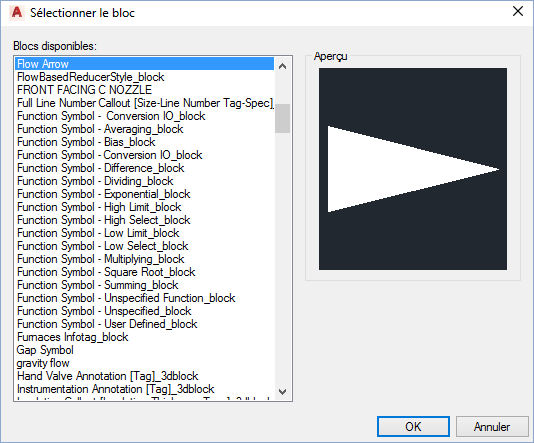 - Dans la boîte de dialogue Sélectionner un bloc, sous Blocs disponibles, sélectionnez un bloc. Cliquez sur OK.