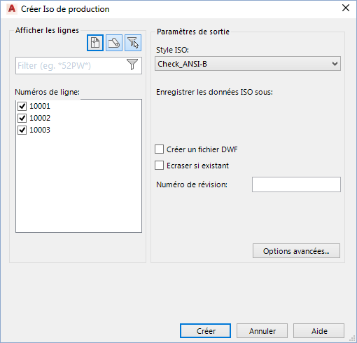 Si cette option est sélectionnée, les dessins isométriques existants portant le même nom sont écrasés. Dans le cas contraire, les nouveaux dessins isométriques sont renommés.