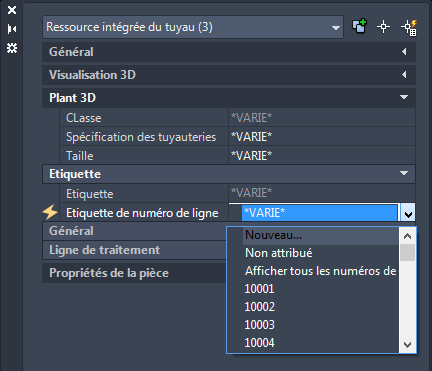 La liste Etiquette de numéro de ligne ne peut pas être activée dans la palette des propriétés si le tuyau sélectionné n'est connecté.