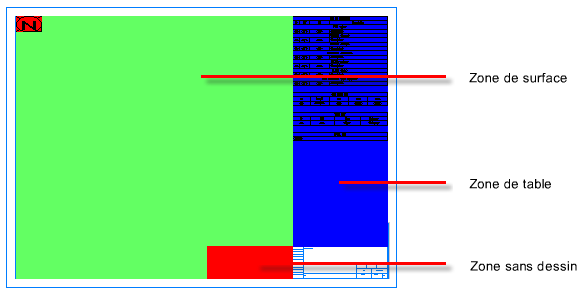 Désigne les zones de dessin et sans dessin dans un dessin Iso.