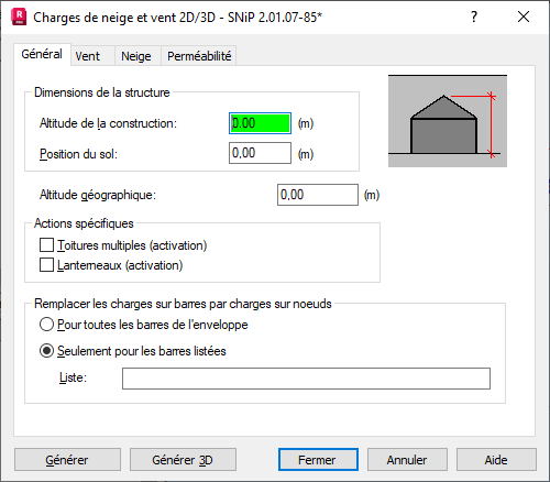 Après l’ouverture de la boîte de dialogue Charge de neige et vent et un clic sur l’onglet Général, la boîte de dialogue suivante s'affiche.
