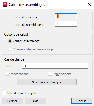 - Vérifier assemblage - si vous sélectionnez cette option, après les calculs, le logiciel procédera à la vérification réglementaire de l’assemblage suivant la norme sélectionnée.