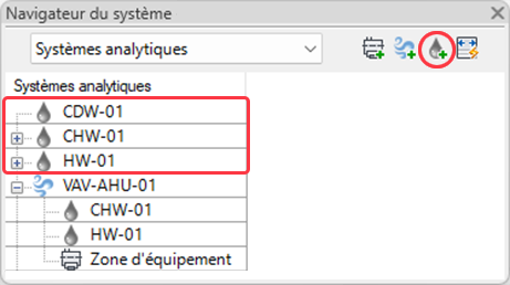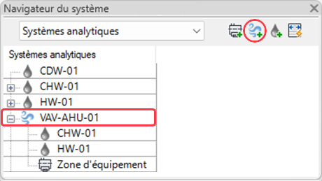 Utilisez les outils du navigateur du système pour ajouter des équipements de zone, des systèmes d'aération et des boucles d'eau.