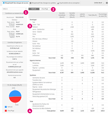 Générez un rapport de charges lorsque vous avez besoin d’informations détaillées sur les charges et les psychrométries afin de guider le dimensionnement des équipements CVC.