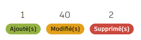 La palette affiche un aperçu des modifications, classées en 3 catégories : objets ajoutés, modifiés et supprimés. Voici un exemple :