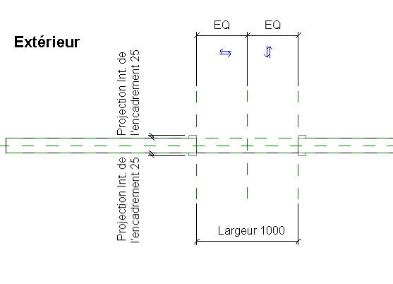 La nouvelle famille s'ouvre dans l'Editeur de familles. Pour la majorité des familles, plusieurs lignes en pointillé vertes s'affichent. Il s'agit des plans de référence ou des plans de construction que vous utiliserez pour créer la géométrie de famille.