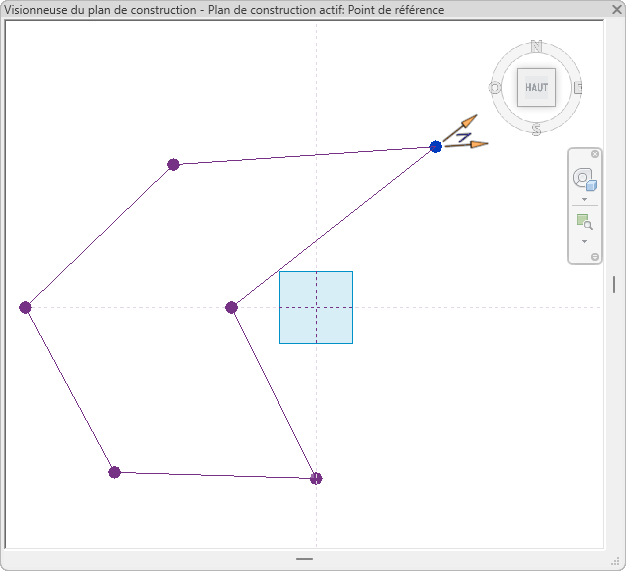 La visionneuse du plan de construction est disponible dans toutes les vues de modèle au sein de l'environnement de projet. L'orientation par défaut correspond au plan de construction actif de la dernière vue active.