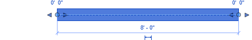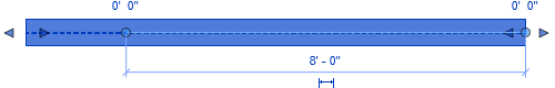 Sélectionnez une poutre ou un contreventement et les poignées de forme s'affichent des deux côtés de l'élément d'ossature sous la forme de flèches bleues.