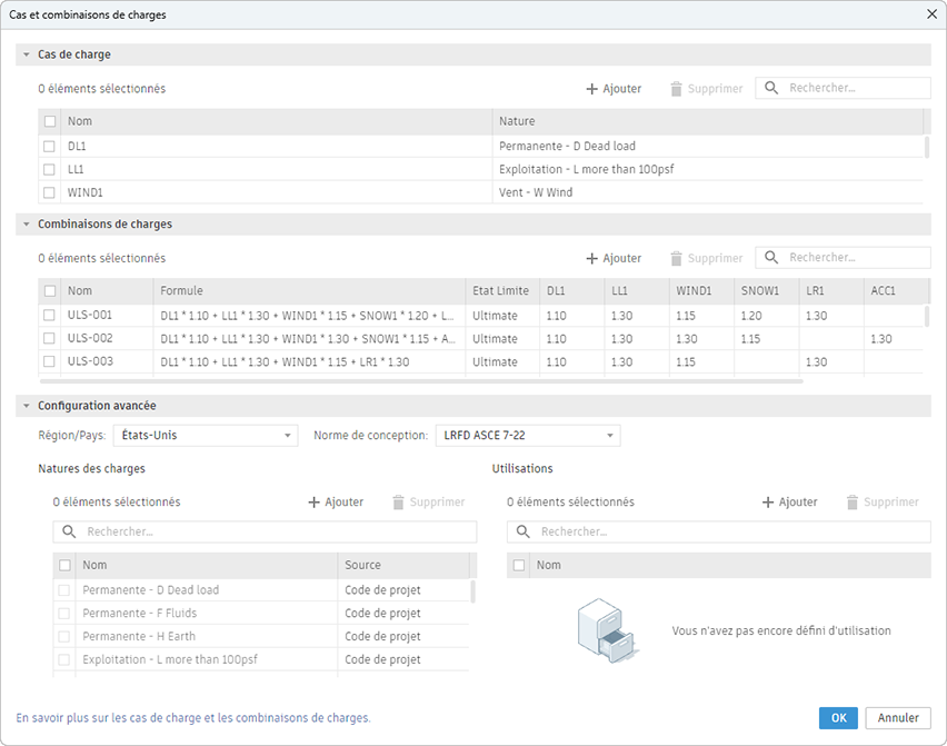 - Possibilité de vérifier l’alignement des cas de charge sur les normes de conception régionales sélectionnées.