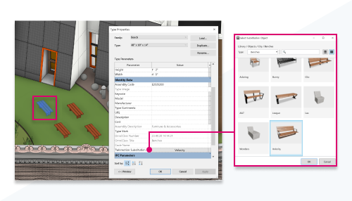 Pour plus d’informations, reportez-vous à la rubrique Substitution d’une famille par un élément Twinmotion.