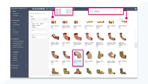 Vous pouvez rechercher plus facilement et plus rapidement des données d’élément dans l’interface améliorée du gestionnaire de données de fabrication.