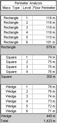 Remarque : Les valeurs de périmètre comprennent le périmètre de chaque sol de volume, même lorsque les sols de volumes se chevauchent dans les volumes adjacents attachés.
