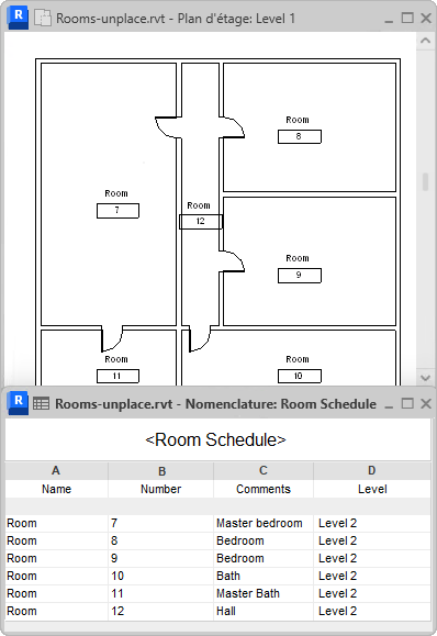 Après avoir créé des pièces, vous pouvez les supprimer d'un modèle de bâtiment de manière temporaire ou permanente.