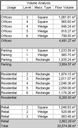 Vous avez conçu des volumes afin d’explorer un modèle conceptuel pour un bâtiment. Vous souhaitez analyser le volume des volumes dans la conception.