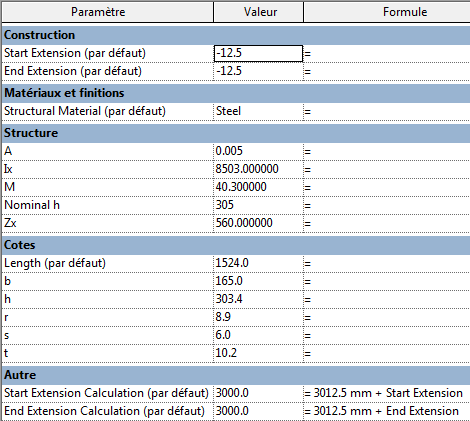 Les projets créés dans les versions antérieures à Autodesk Revit LT 2014 requièrent une mise à niveau manuelle des familles de poutres en acier pour supprimer l'ensemble des paramètres hérités et leurs comportements.