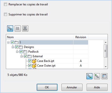 Dans Autodesk Vault, sélectionnez les fichiers extraits.