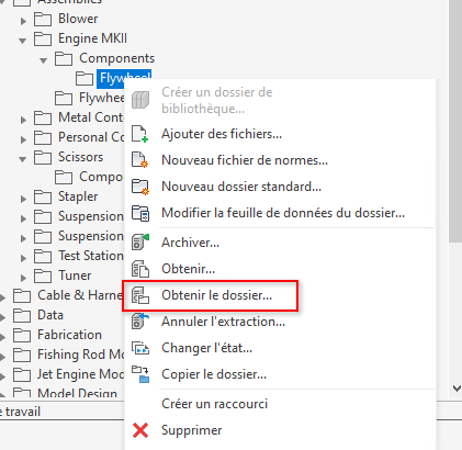 - Dans la barre d’outils principale, cliquez sur Actions > Obtenir le dossier.