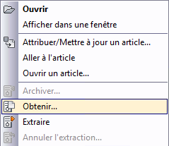 Obtenir une copie en lecture seule d’un fichier : par défaut, la commande Obtenir extrait une version en lecture seule du fichier à partir du coffre-fort et la place dans le dossier de travail. Ce fichier peut être affiché, mais ne peut pas être modifié, car il n’est pas extrait. Cela signifie qu'un autre utilisateur peut extraire le fichier et le modifier. Vous ne verrez pas les modifications jusqu’à ce que l’utilisateur archive le fichier dans le coffre-fort et que vous effectuiez une actualisation.